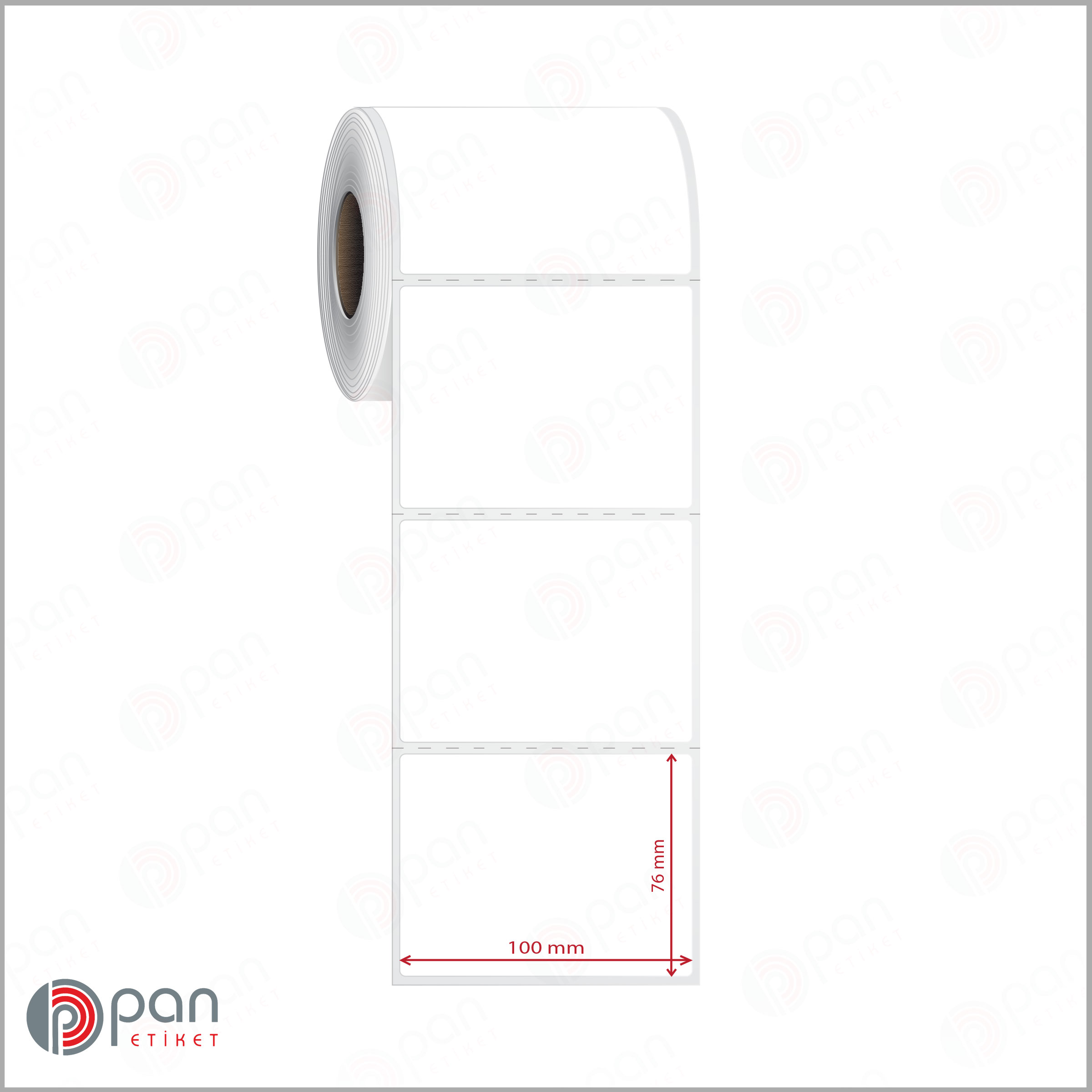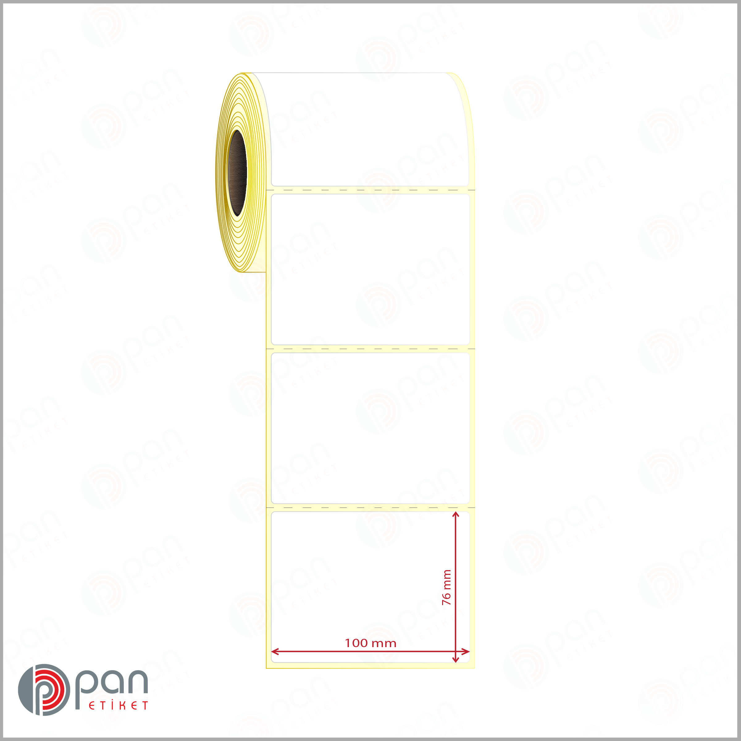 100×76 mm ölçülerindeki bu perforeli yapışkanlı rulo etiketin, rulo genişliği kenar boşlukları dahil ortalama olarak 104-106 mm ‘dir. Sipariş öncesinde barkod yazıcı cihazınızın bu genişlikte etiket rulosu kullanabildiğinden emin olunuz.