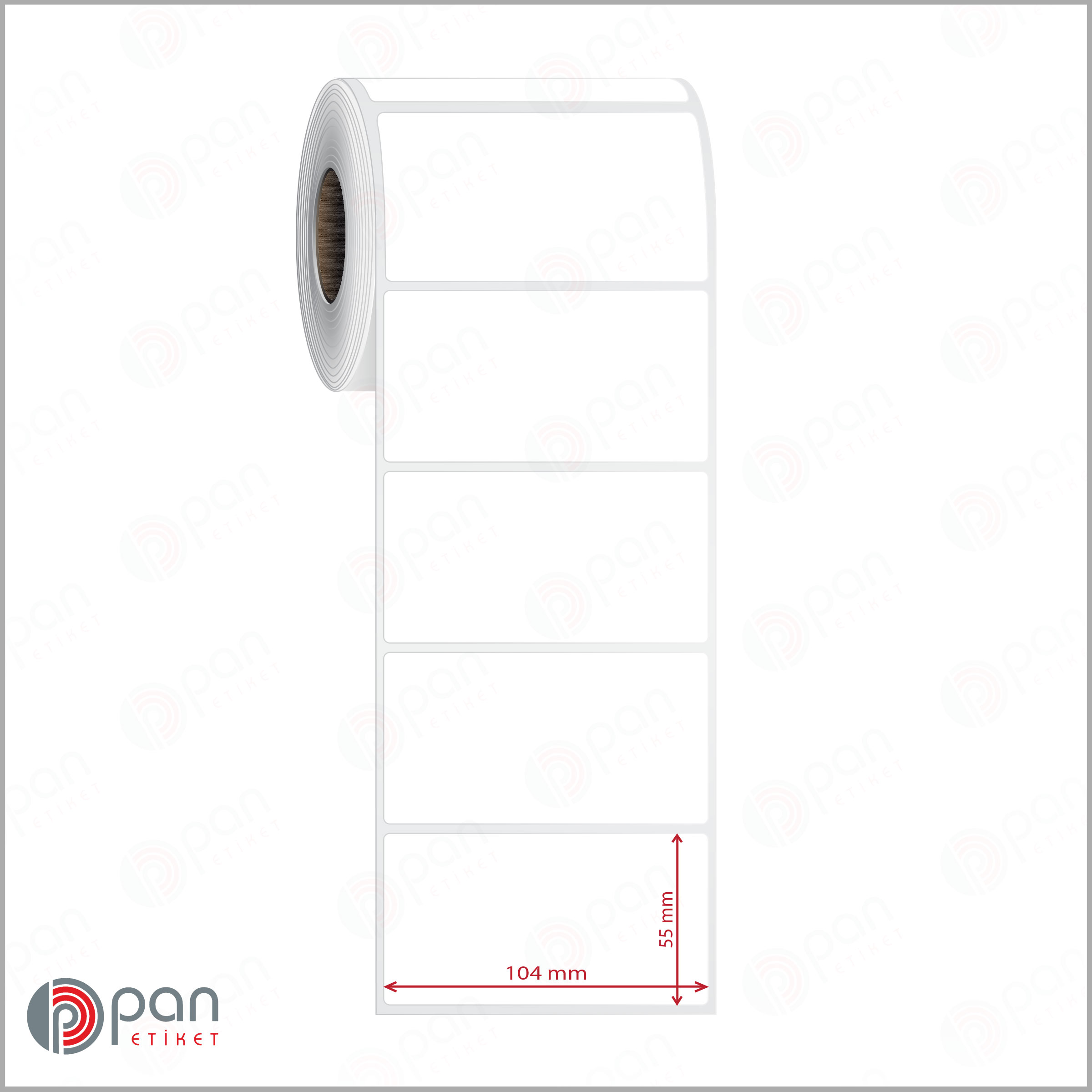 104×55 mm ölçülerindeki bu yapışkanlı rulo etiketin, rulo genişliği kenar boşlukları dahil ortalama olarak 108-110 mm ‘dir. Sipariş öncesinde barkod yazıcı cihazınızın bu genişlikte etiket rulosu kullanabildiğinden emin olunuz.