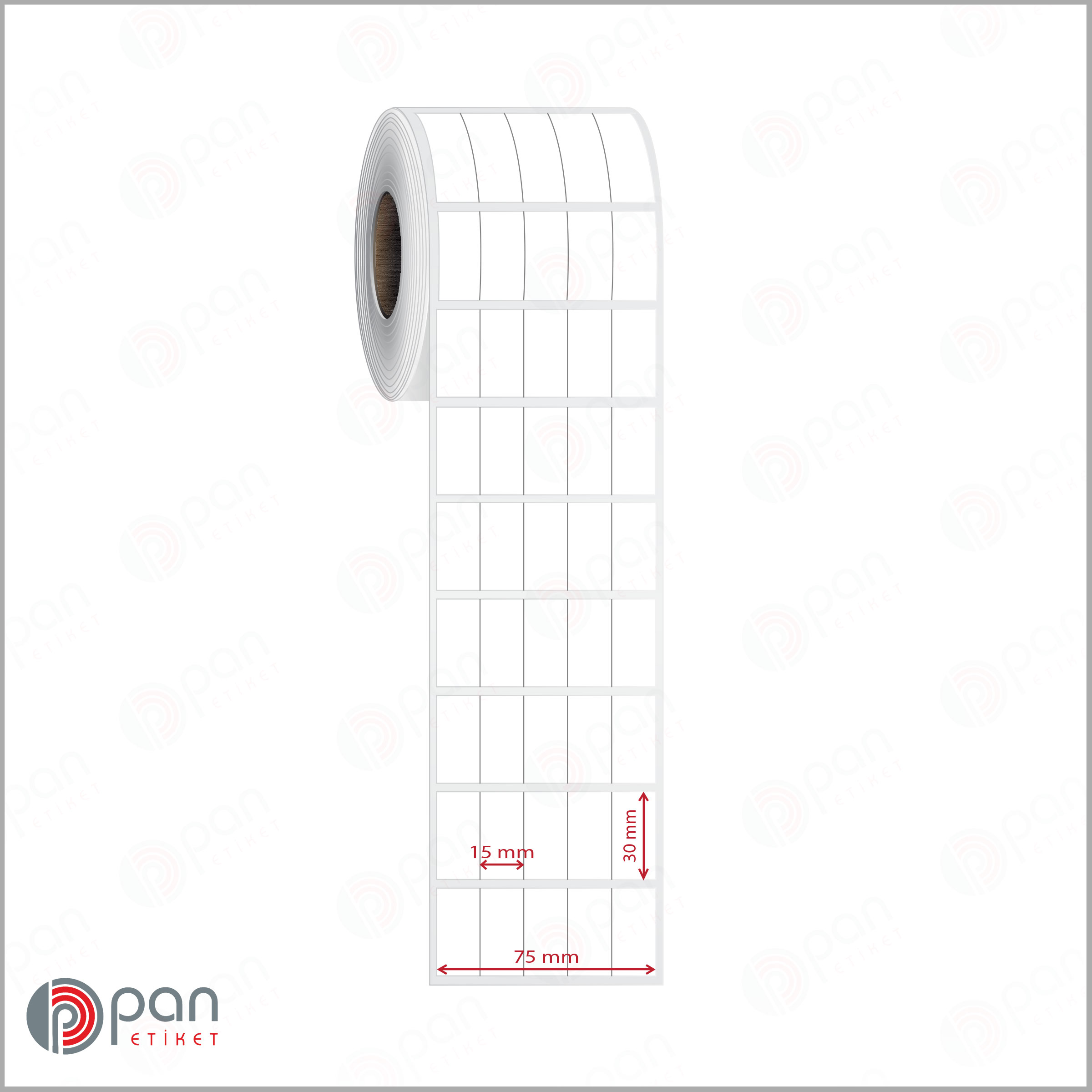 15×30 mm ölçülerindeki 5 ‘li bitişik yapışkanlı rulo etiketin, rulo genişliği kenar boşlukları dahil ortalama olarak 79-81 mm ‘dir. Sipariş öncesinde barkod yazıcı cihazınızın bu genişlikte etiket rulosu kullanabildiğinden emin olunuz.