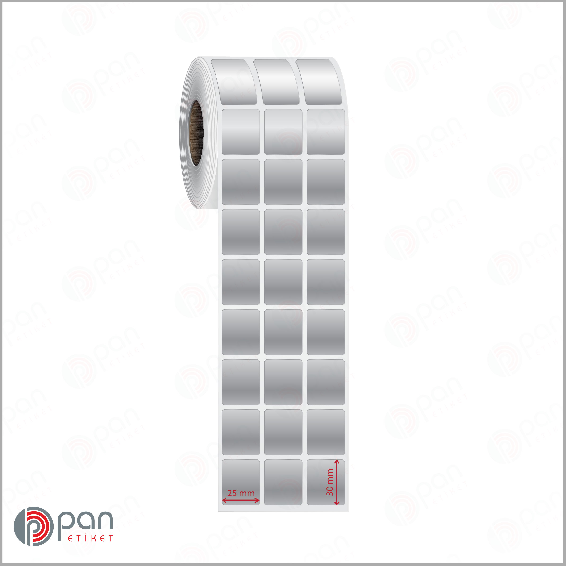 25×30 mm ölçülerindeki 3 ‘lü yanyana yapışkanlı rulo etiketin, rulo genişliği kenar boşlukları dahil ortalama olarak 85-87 mm ‘dir. Sipariş öncesinde barkod yazıcı cihazınızın bu genişlikte etiket rulosu kullanabildiğinden emin olunuz.