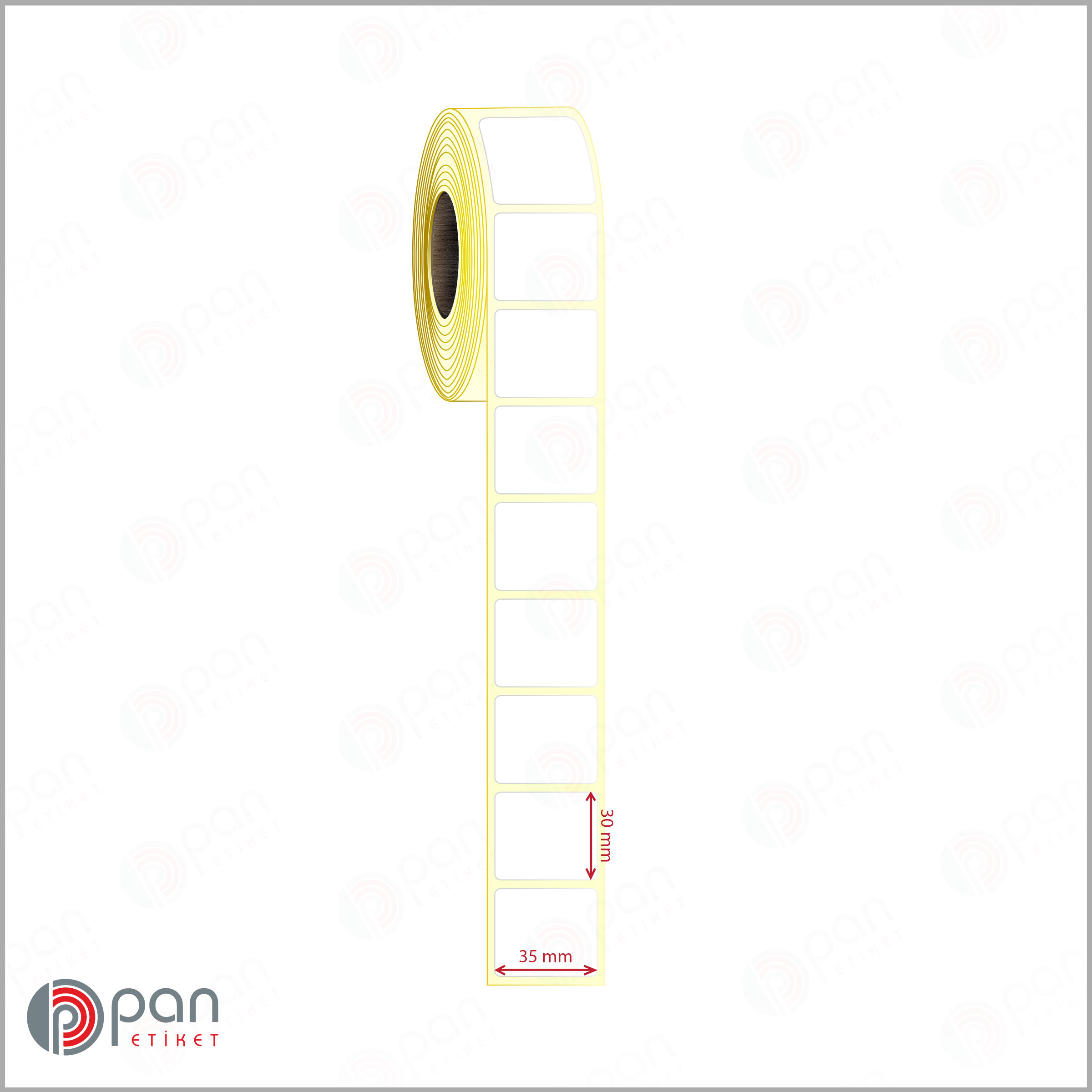 35×30 mm ölçülerindeki bu yapışkanlı rulo etiketin, rulo genişliği kenar boşlukları dahil ortalama olarak 39-41 mm ‘dir. Sipariş öncesinde barkod yazıcı cihazınızın bu genişlikte etiket rulosu kullanabildiğinden emin olunuz.
