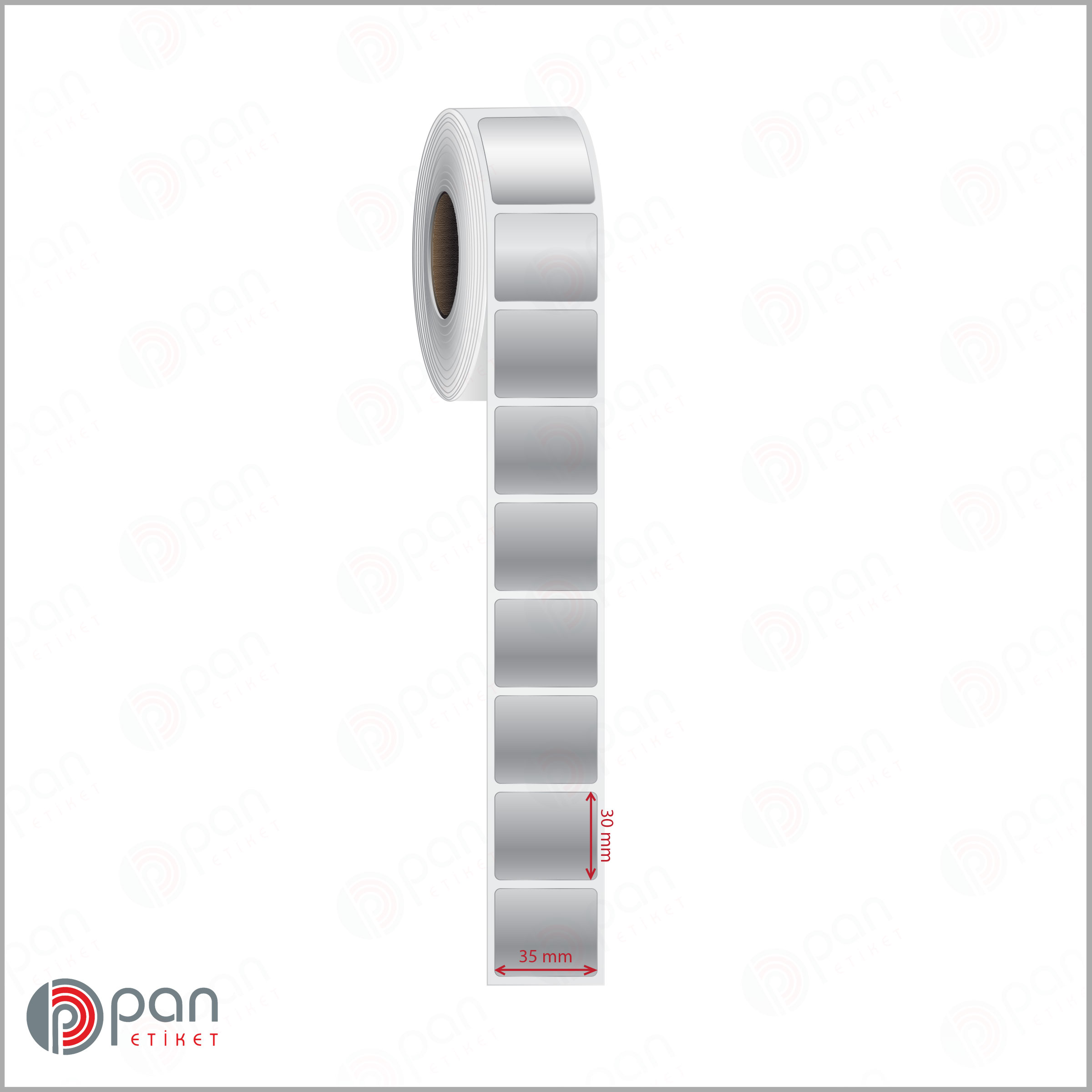 35×30 mm (3,5 x 3 cm) ölçülerinde, yapışkanlı barkod etiketi