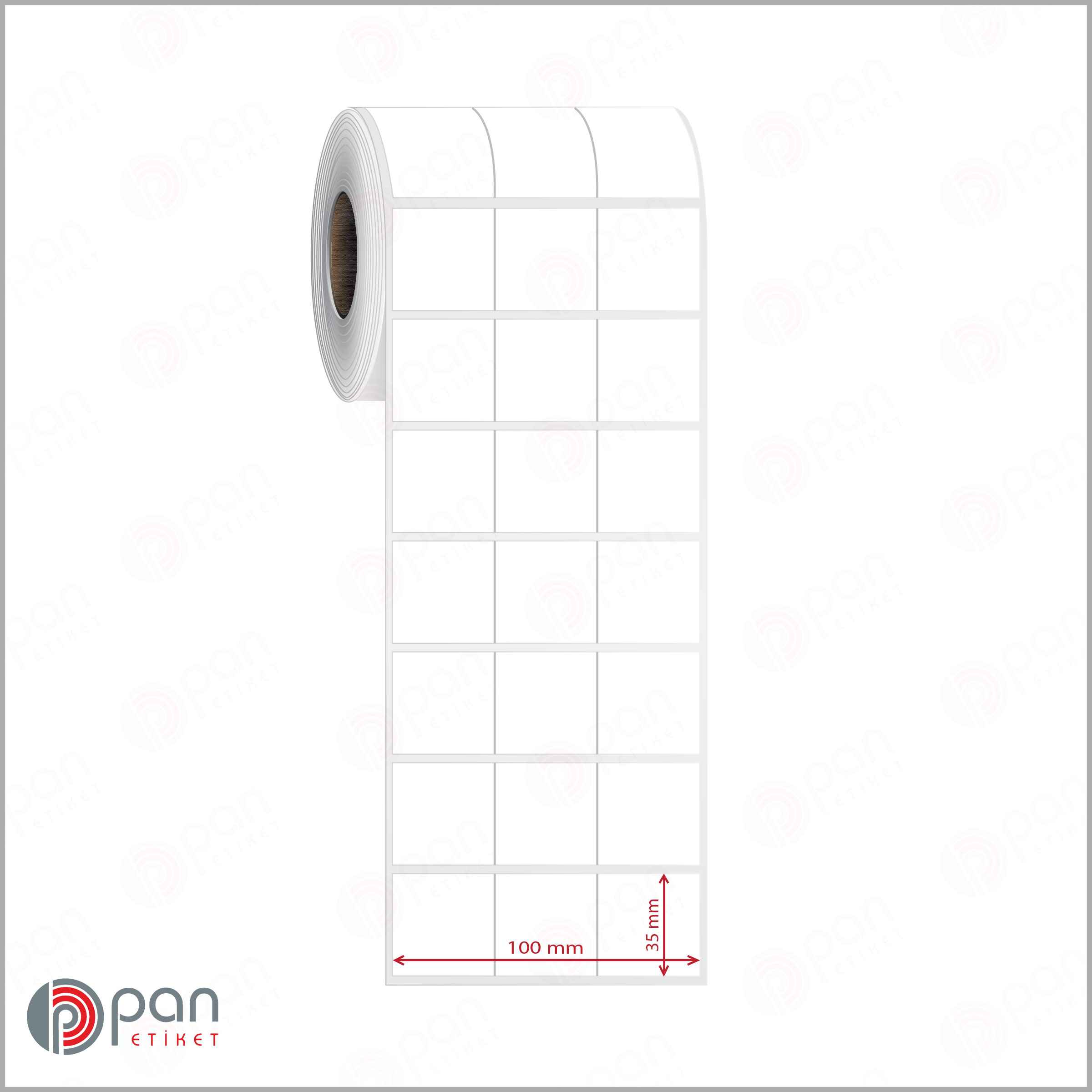 35×35 mm ölçülerindeki 3 ‘lü bitişik yapışkanlı rulo etiketin, rulo genişliği kenar boşlukları dahil ortalama olarak 109-111 mm ‘dir. Sipariş öncesinde barkod yazıcı cihazınızın bu genişlikte etiket rulosu kullanabildiğinden emin olunuz.