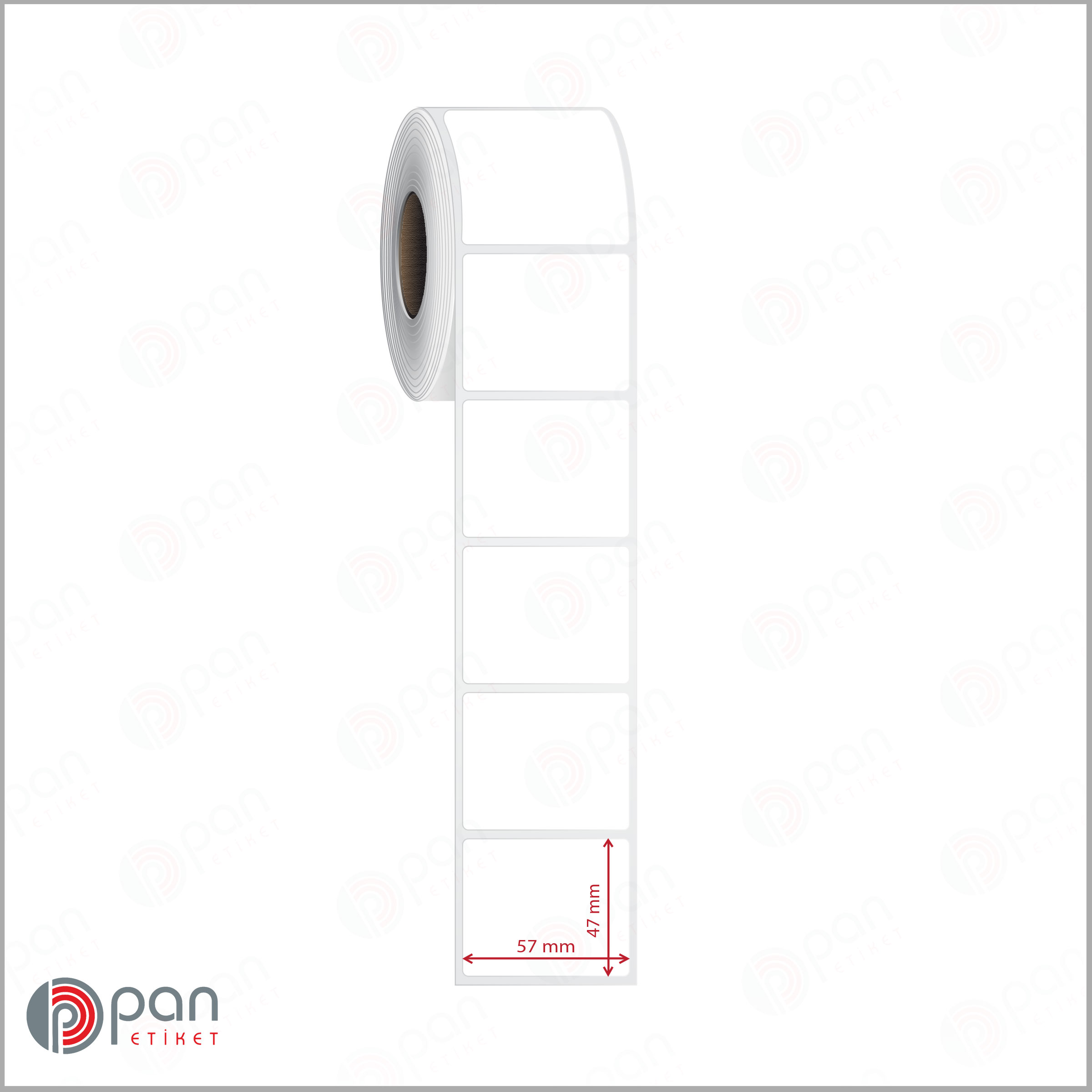 57×47 mm ölçülerindeki bu yapışkanlı rulo etiketin, rulo genişliği kenar boşlukları dahil ortalama olarak 61-631 mm ‘dir. Sipariş öncesinde barkod yazıcı cihazınızın bu genişlikte etiket rulosu kullanabildiğinden emin olunuz.