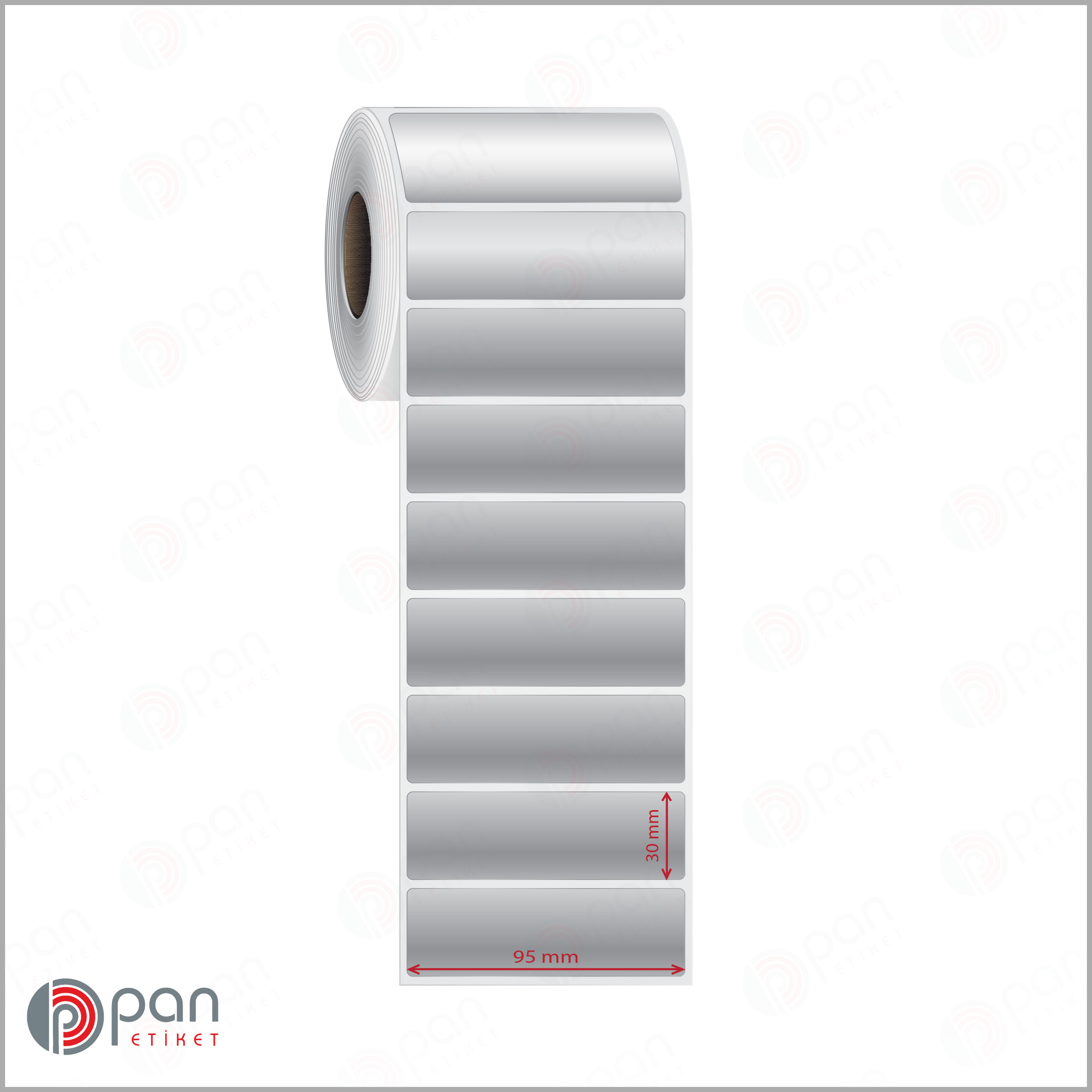 95×30 mm (9,5 x 3 cm) ölçülerinde, yapışkanlı barkod etiketi